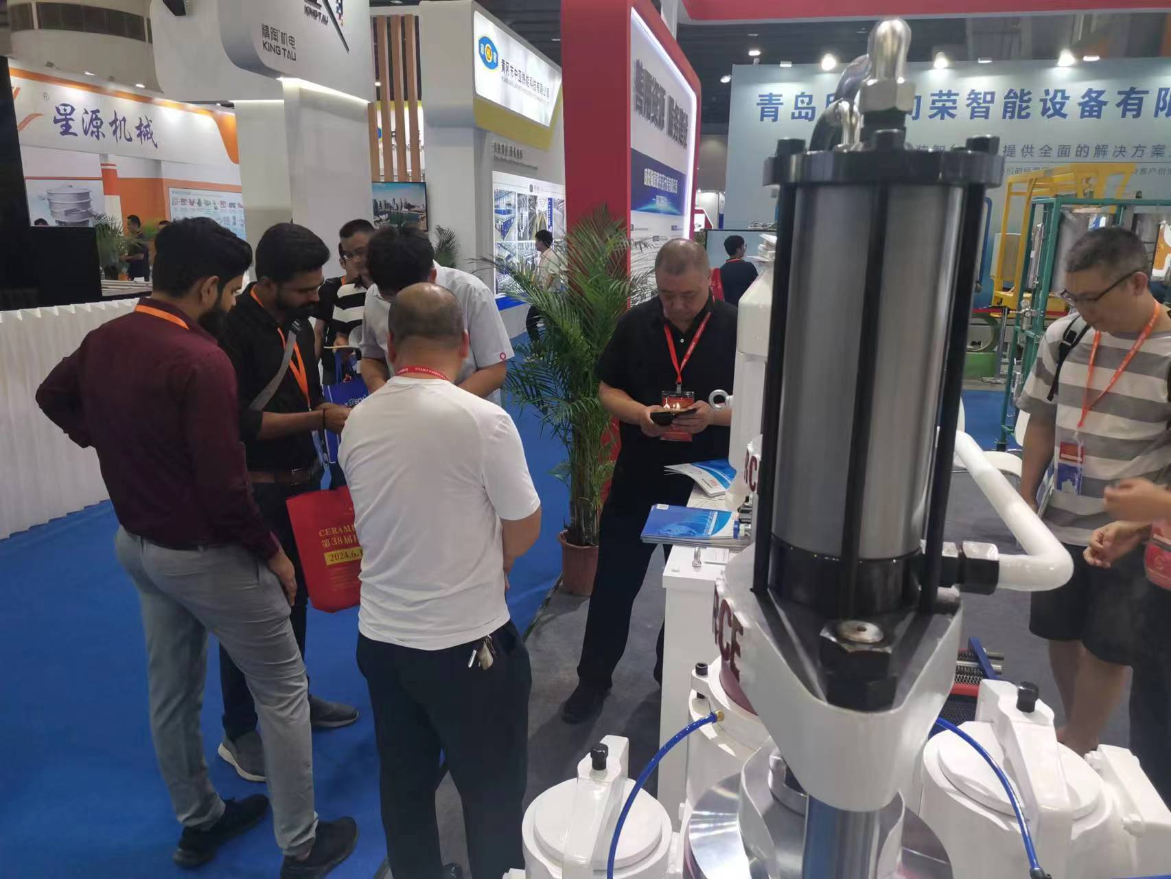 本次展會集中展示了咸陽陶瓷院的科技創新技術及成果,包括:先進陶瓷材料、環保催化劑及工程設備、干法制粉、YB-300出口型柱塞泵、固廢熱解催化評價平臺、靜摩擦系數測定儀以及陶瓷磚恢復系數測定儀等。我院展臺設計新穎、顏色燈光鮮亮、格調醒目,利用多種尺寸的大型噴繪圖片、大型LED屏視頻展示、多臺裝備實物展品、資料圖書等形式進行宣傳推廣,參展期間,我院展臺人流不斷,工作人員專業熱情地接待各國客戶并進行耐心講解,現場交流氣氛熱烈,受到國內外客戶的高度關注,收獲滿滿。