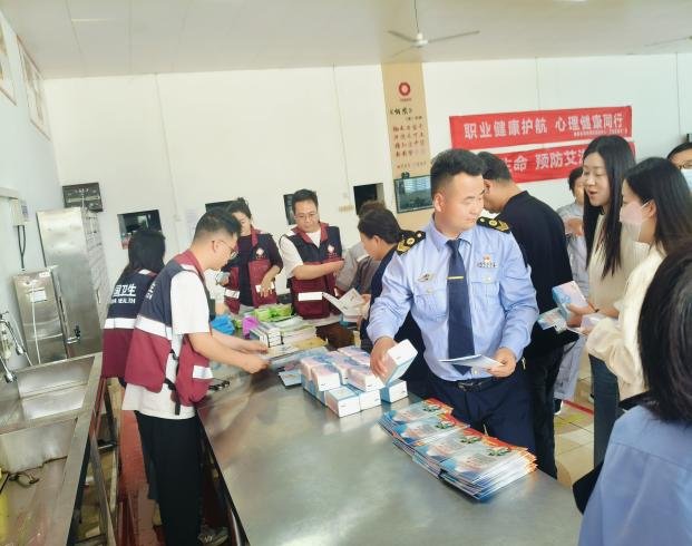 為了加強(qiáng)職業(yè)病防治法的的全員宣傳普及,活動(dòng)中特邀咸陽市衛(wèi)健局、市疾控中心等多家單位聯(lián)合培訓(xùn)指導(dǎo),醫(yī)療專家教授為員工現(xiàn)場(chǎng)答疑解惑;組織員工在籃球場(chǎng)集體做“工間操”,預(yù)防頸椎、腰椎等慢性疾病,員工們積極參與,活動(dòng)通過設(shè)立職業(yè)健康知識(shí)展板區(qū),系統(tǒng)展示職業(yè)病危害因素、預(yù)防措施及職業(yè)心理健康知識(shí)。同時(shí),醫(yī)療團(tuán)隊(duì)為職工提供血壓檢測(cè)等服務(wù)。